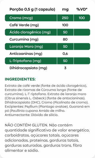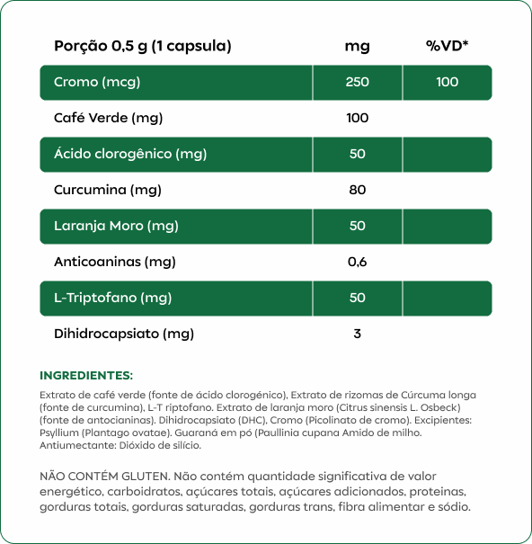 Sim. Todos os ingredientes listados são de origem vegetal, como extratos de café verde, cúrcuma, laranja moro e guaraná em pó.